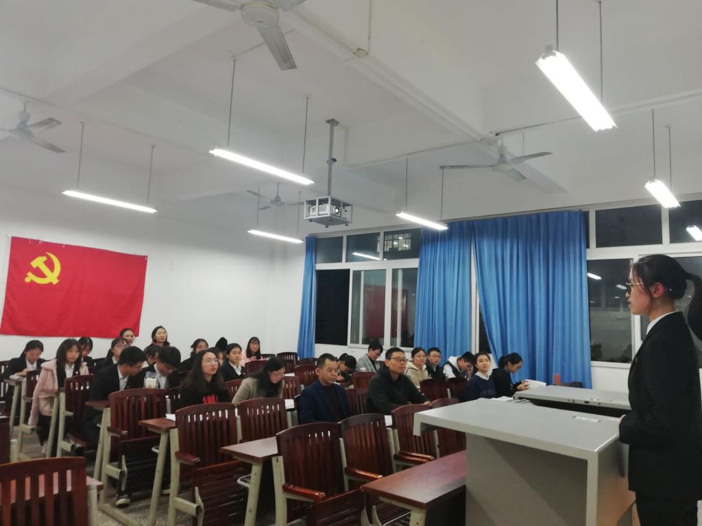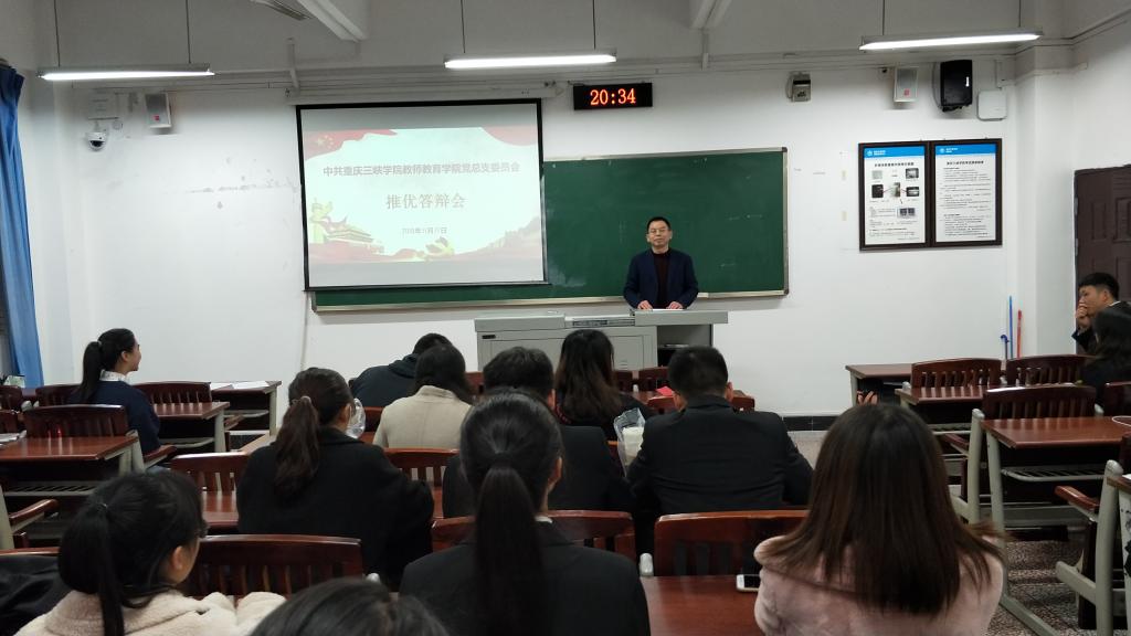 2019年11月10日晚上19:00,教师教育公司员工党支部在1教414室召开推优答辩会。教师教育公司李中春书记、员工第一支部书记高曼、第二支部书记张京友、邓峥嵘老师、冯梅老师以及教师教育公司员工党支部全体党员、预备党员、发展对象和部分积极分子参与此次会议,会议由张真真主持。