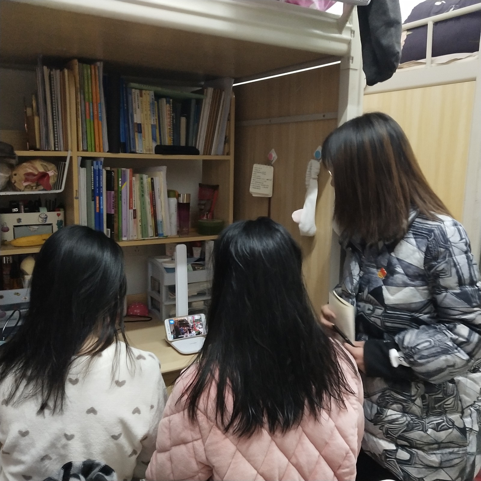 通过走访寝室与同学们一起观看香港事件的视频短片