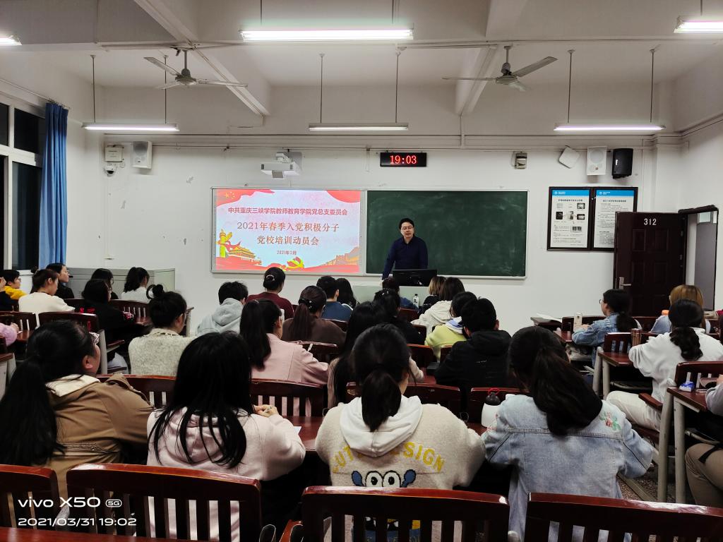 为了进一步纯洁入党动机,提升对党的认识,坚定理想信念,2021年3月31日晚上7:00,于明辨楼1栋312教室召开公司第77期入党积极分子专项培训会,党总支书记胡秀忠担任主讲、员工第一党支部书记高曼、组织委员兼纪检委员邓峥嵘、辅导员鞠小勤列席了本次培训会。