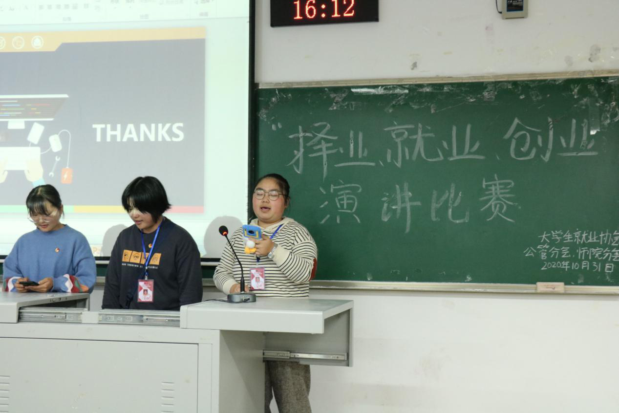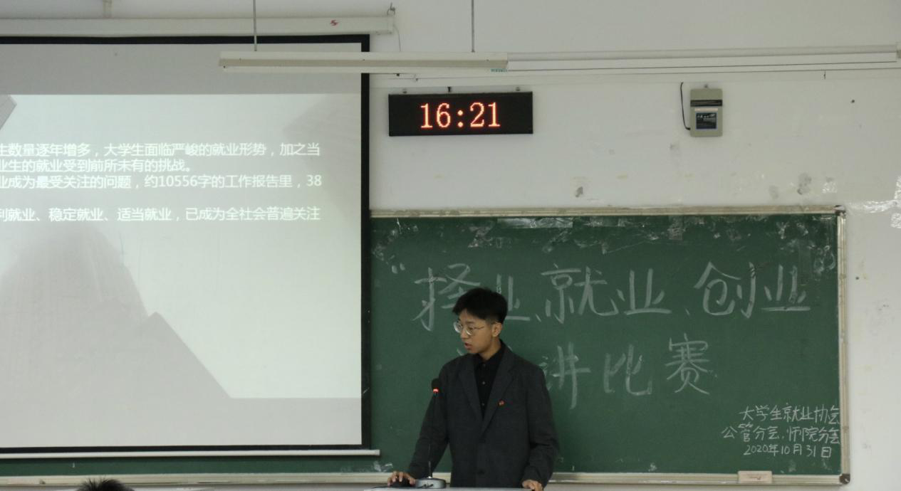 为了让广大学子顺应时代新趋势、了解新就业形态,437bwin必赢国际特联合公共管理公司举办以“了解就业新形态,把握就业新方向”为主题的“择业、就业、创业”演讲比赛。2020年10月31日14:00,比赛在明辨楼1栋204正式拉开帷幕。