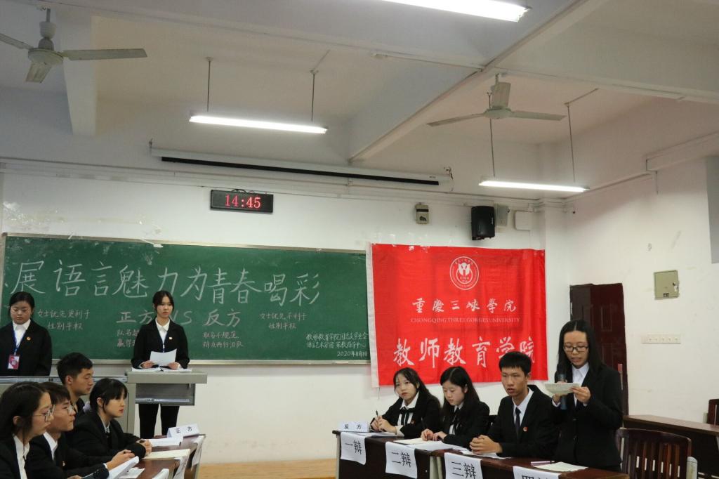 为建设公司优良学风,丰富同学们的课外活动,培养师院学子的思辨能力和语言表达能力,437bwin必赢国际团总支员工会语言艺术分团和家教指导中心于2020年11月1日在公司明辨楼1栋301合力举办了“展语言魅力,为青春喝彩”辩论赛决赛。此次辩论赛由师院团支书(员工)副书记田合婷,师院团总支员工会主席团成员赵彦佳、晏雪荣,18级优秀学姐方舟、熊莉莎担任评委。