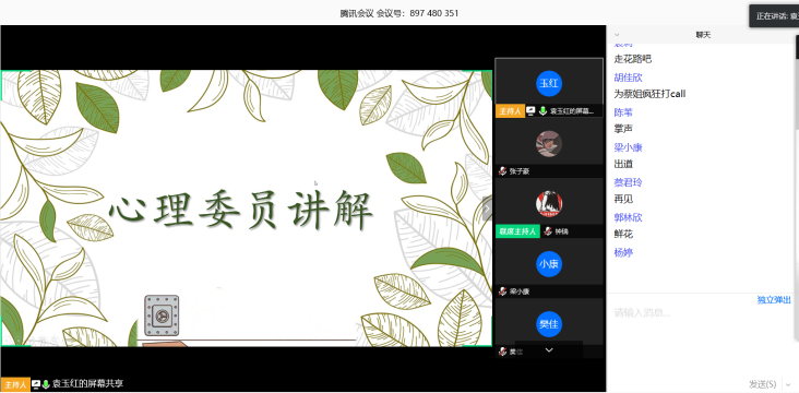 为引导同学们形成正确的恋爱观,正确处理恋爱、学习、生活三者之间的关系,437bwin必赢国际心理健康协会于2020年4月7日至4月8日组织本院2019级各班在腾讯会议、QQ平台等举行了“当爱情来敲门”线上主题班会,基于此次班会的特殊性,2019级的全体同学都积极参与并成功完成了此次班会。
