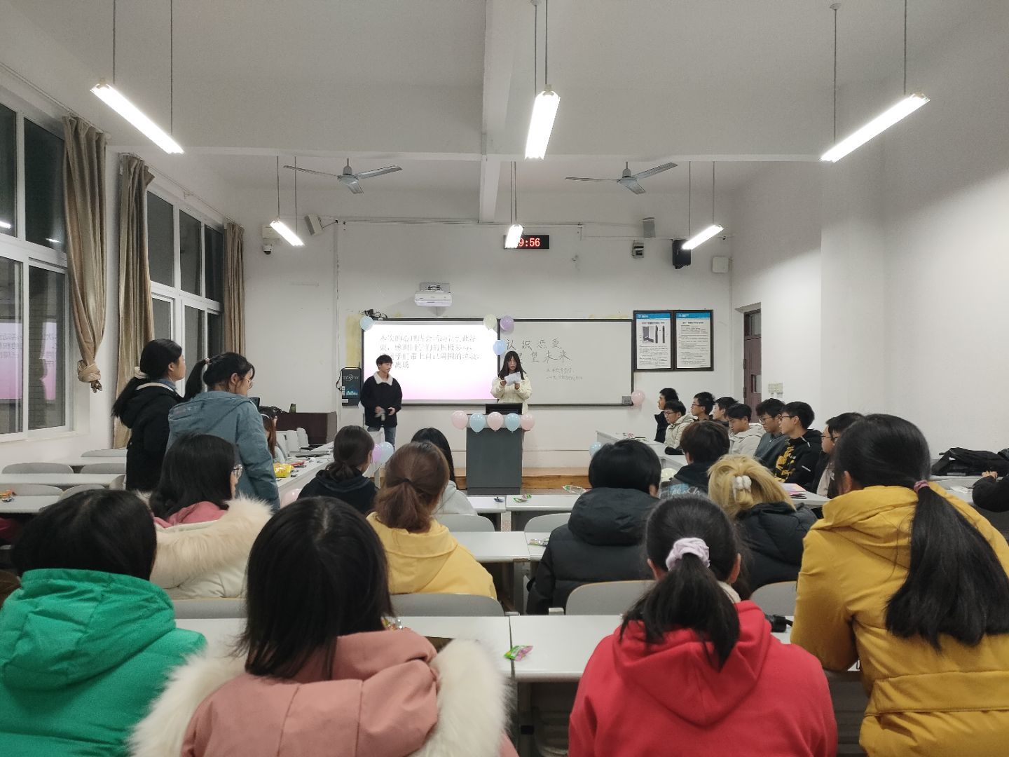 为了进一步提高大一新生心理承受能力,促进同学们的心理健康,2021年11月16、17日晚上7点,437bwin必赢国际2021级各班在明辨楼开展了“花开应有时,青春无怨悔”主题心理班会。