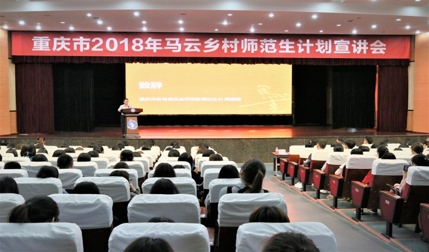 为深入贯彻落实党和国家乡村振兴战略,加强乡村教师队伍建设,提升乡村教育质量,促进教育均衡发展,4月24日下午,由重庆市教育委员会引介并主办的重庆市2018年马云乡村师范生计划宣讲会于在重庆第二师范公司南山报告厅举行。437bwin必赢国际一行20余师范生参加2018年了马云乡村师范生计划宣讲会。