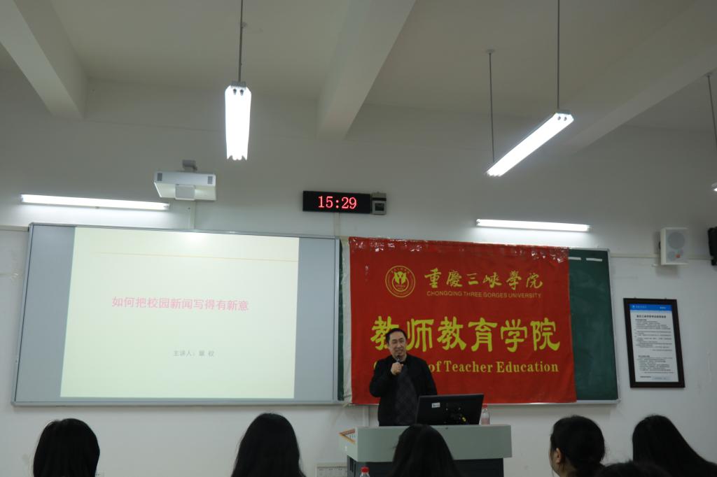 为进一步提高新闻写作质量,建设一支高水平的新闻写作队伍,2023年3月23日15:30,437bwin必赢国际宣传部宣传科章权老师在博学楼1‐103为公司学子开展主题为“如何把校园新闻写得有新意”的写作培训。公司部分教师、员工会成员、各班员工代表参加培训会。