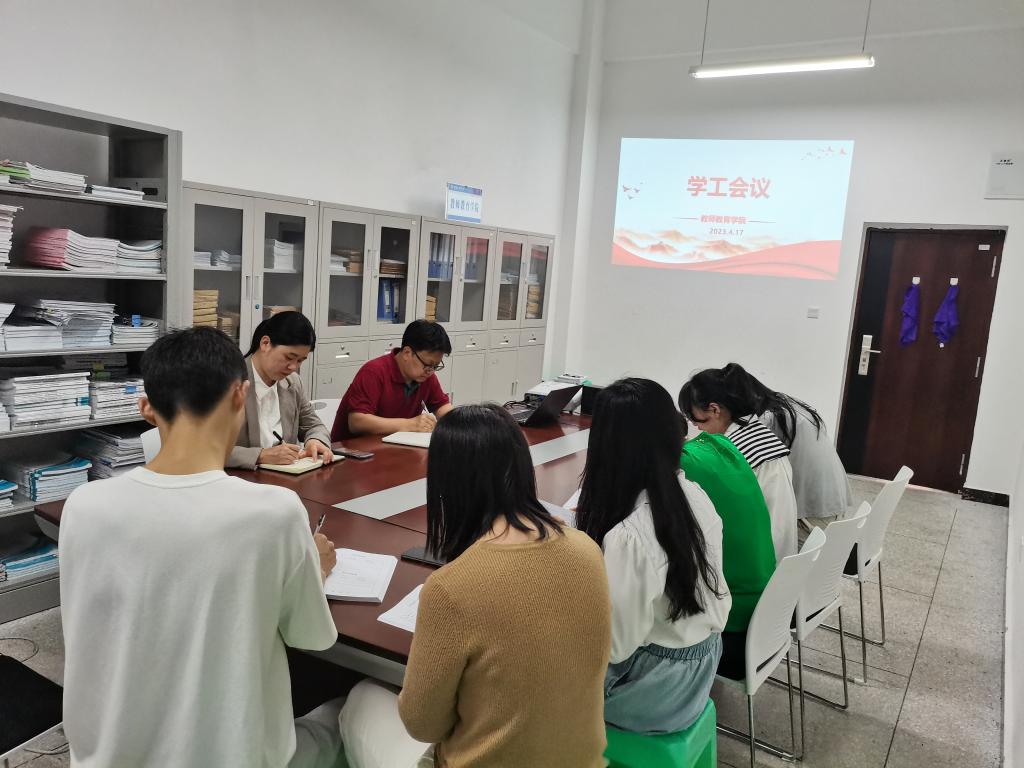 4月17日下午,437bwin必赢国际在博学楼3栋124召开学工例会,会议由学工办主任向红主持。