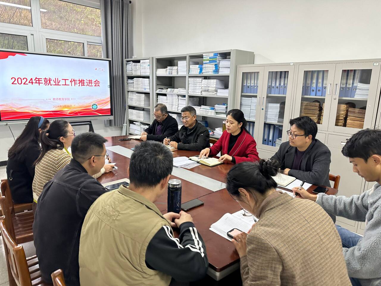 许经理传达了公司关于做好2024届毕业生春季促就业攻坚行动动员会精神内容,本科生辅导员鞠小勤介绍了毕业生当前就业情况、西部就业计划、访企拓岗现状、研究生调剂复试情况等;研究生毕业班辅导员冯梅介绍了研究生就业去向和员工当前就业难点。