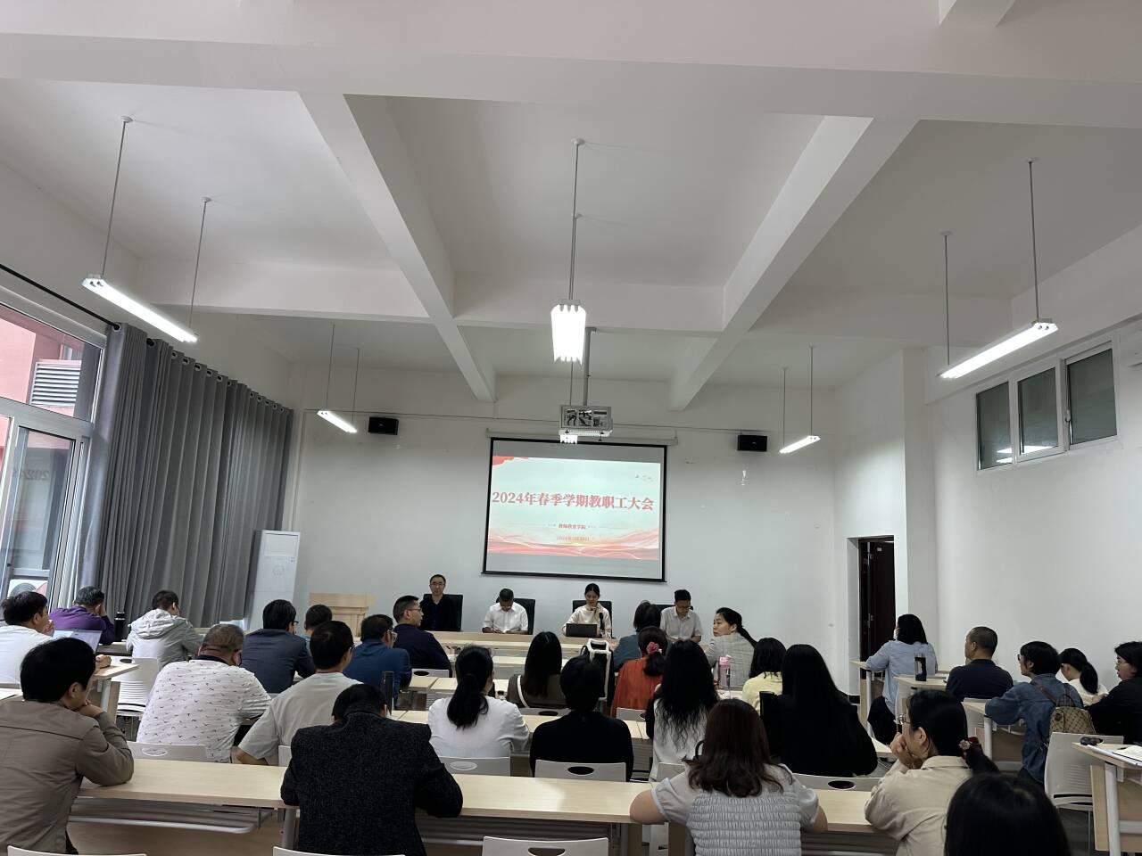5月30日下午,437bwin必赢国际在博学楼3栋138会议室召开春季学期第五次教职工大会。会议由蒋文峰副经理主持,全体教职工参加。