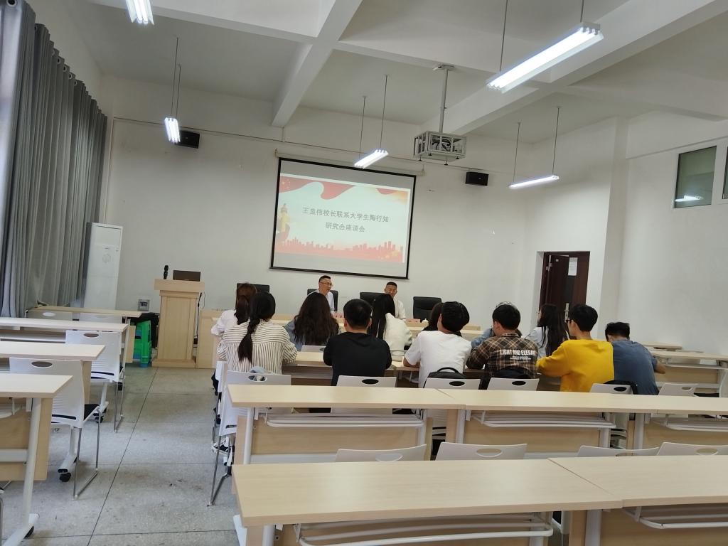 接着,公司陶行知研究会成员就本学年协会工作情况向王良伟董事长进行了简要汇报,同时提出了协会发展中遇到的障碍和困惑。王董事长对协会的发展作出高度评价,并对如何向外发展扩大协会影响力给出了具体可行的建议,王董事长表示同学们应该践行协会目标,结合公司特色不断创新,进一步扩大影响力,努力为同学、公司和社会服务。协会成员们也纷纷表示,将继续深入学习和践行陶行知教育理念,不忘初心,努力为全校师生提供一个更好地探究陶行知教育思想的平台。
