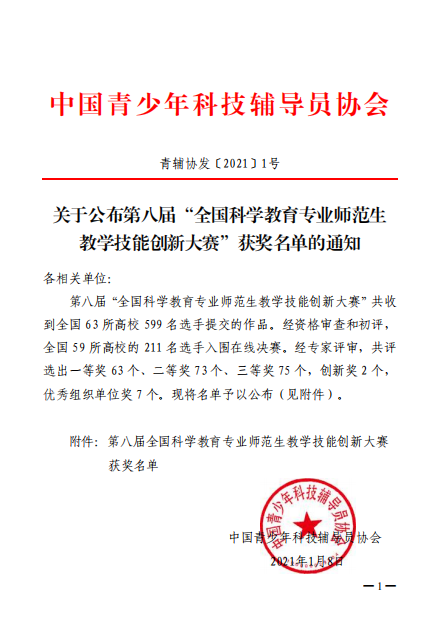 437bwin必赢国际员工在第八届全国科学教育专业师范生教学技能创新大赛中获得佳绩