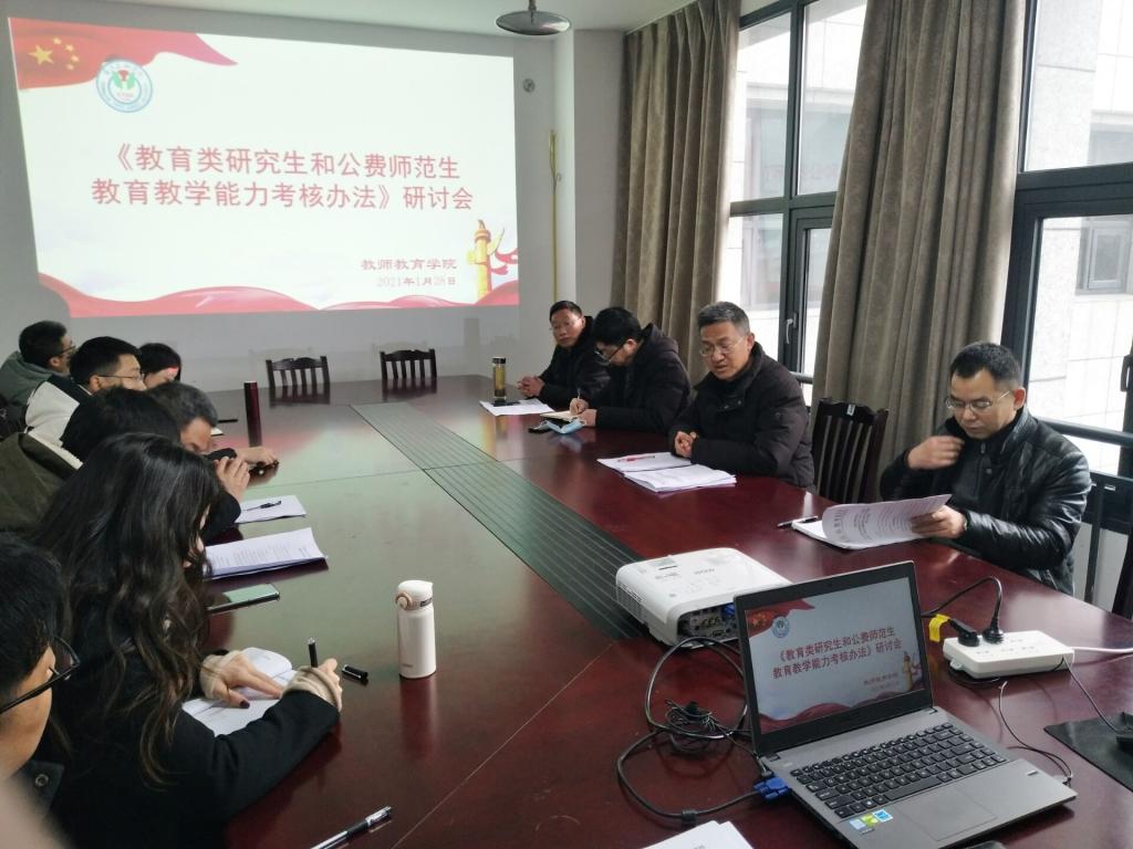 2021年1月28日,437bwin必赢国际在科技楼209-4召开了《2021届教育类研究生和公费师范生免试认定中小学教团队格公司产品能力考核办法》(讨论稿)制订工作会,公司领导、相关系主任、部分教学科研骨干、辅导员代表参加会议,会议由经理潘勇主持。